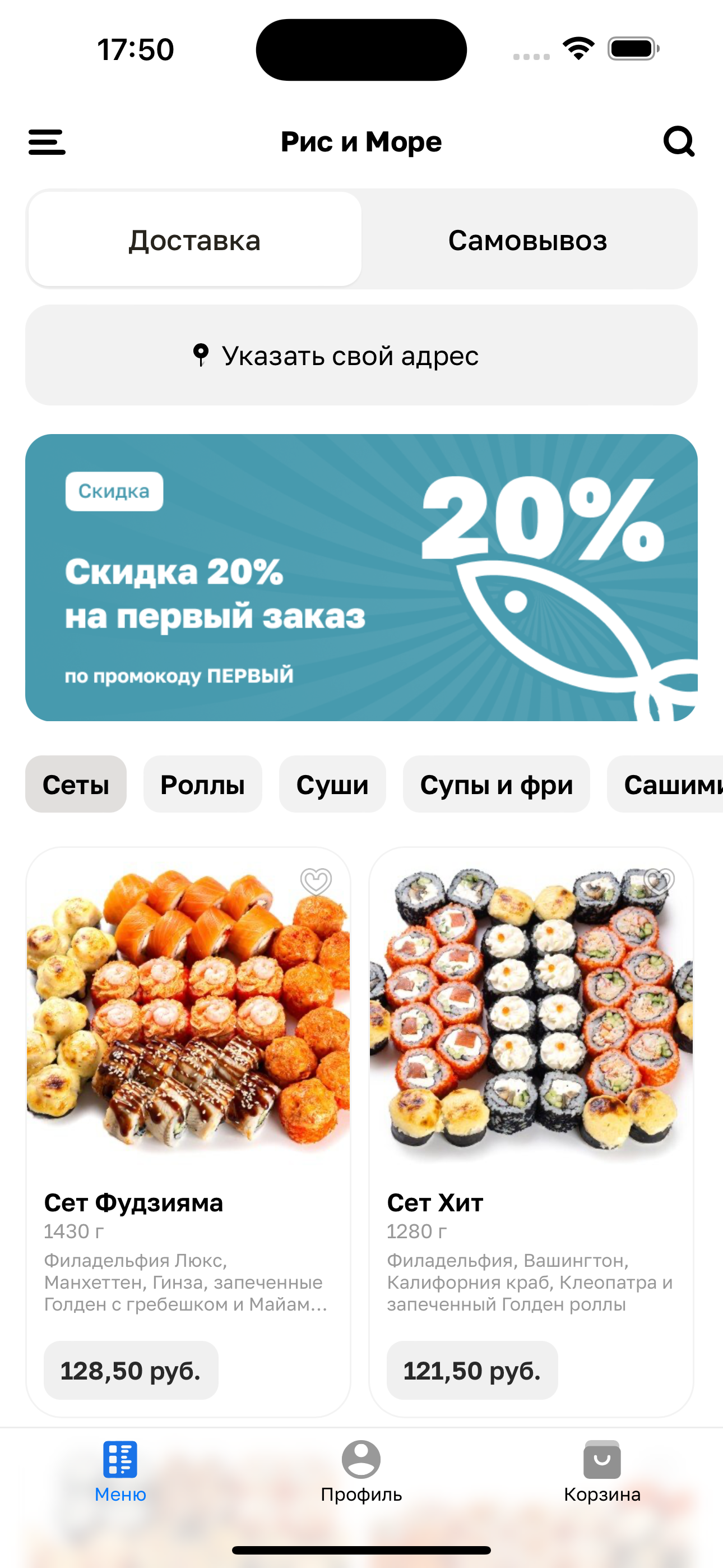 Сделайте свой первый заказ из приложения прямо сейчас и получите скидку 20% по промокоду ПЕРВЫЙ!