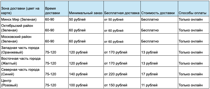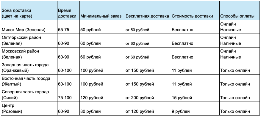 В зеленых зонах (примерно соответствует Московскому и Октябрьскому району), в том числе в микрорайоне Минск Мир - доступна оплата онлайн картой и наличными при получении заказа. В часы высокого спроса оплата наличными может быть отключена.