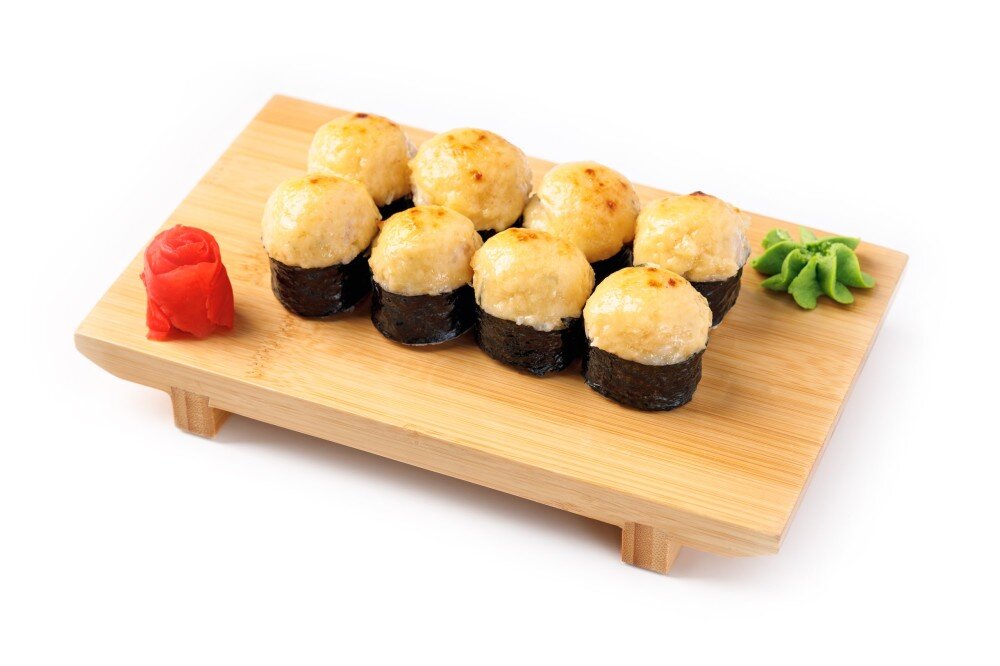Ролл с дальневосточным гребешком в фирменном сырно-медовом соусе